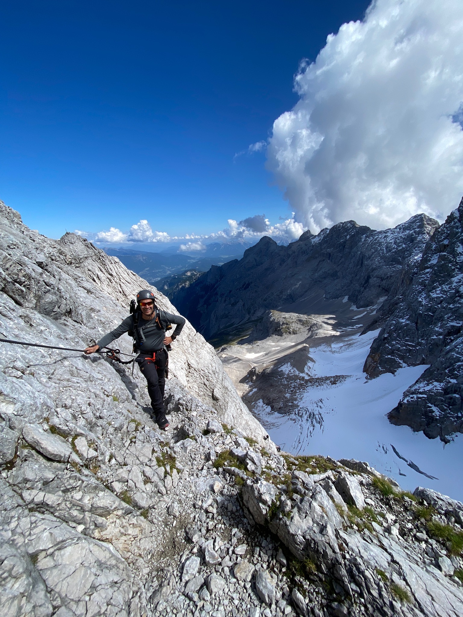 Toch wel een beetje zenuwachtig staan we de volgende ochtend aan de start. Op de route zitten pittige klettersteigstukjes en we gaan voor het eerst zelfstandig een kleine gletsjer oversteken op steigijzers. Het wordt een loodzware dag met spannende passages. De laatste 2 uur zijn pittig omdat er onverwachts nog veel sneeuw ligt rond de top. We staan samen heel trots op de top. De kabelbaan brengt ons weer naar beneden en we rijden die avond en nacht terug naar Nederland.