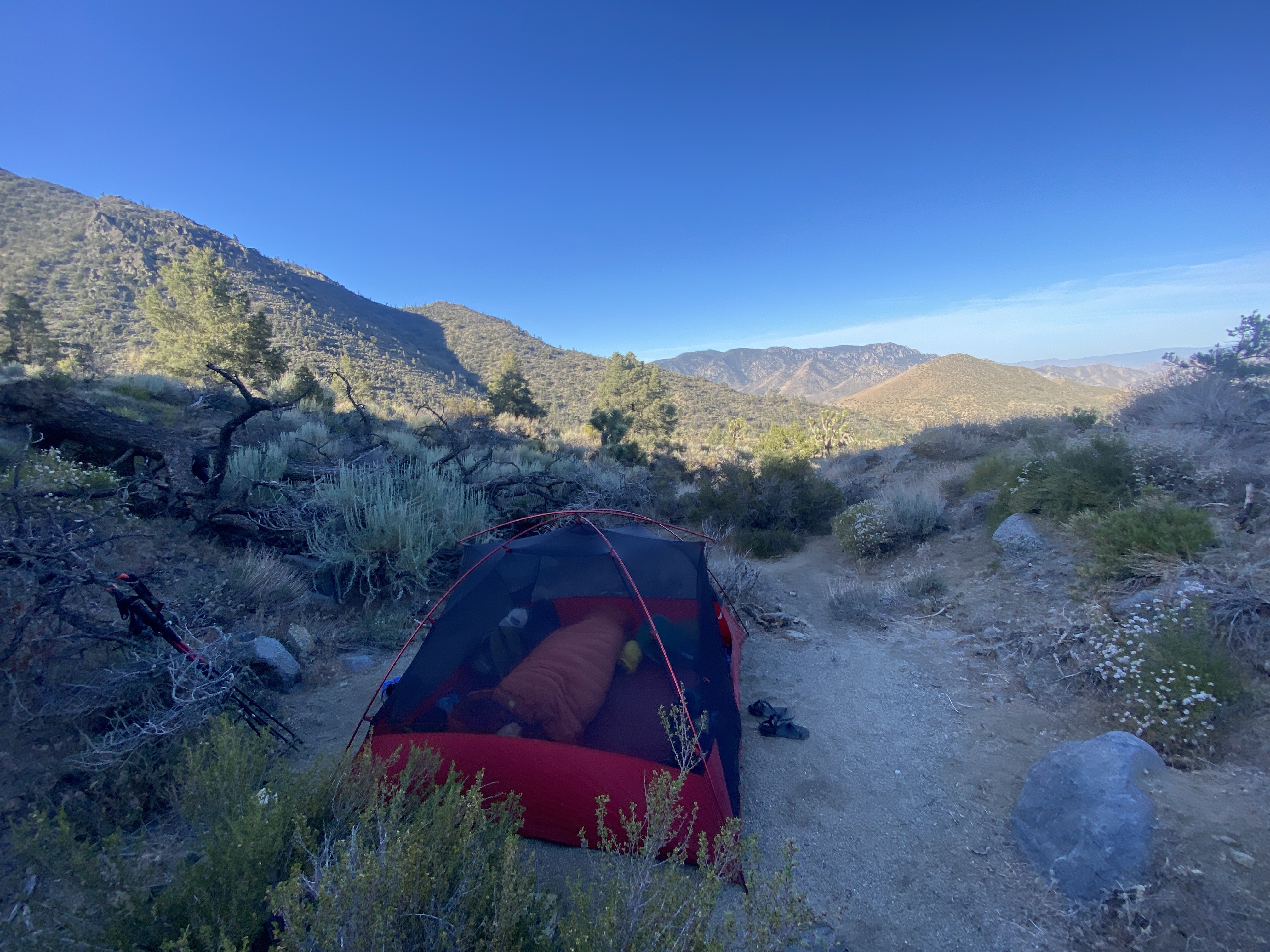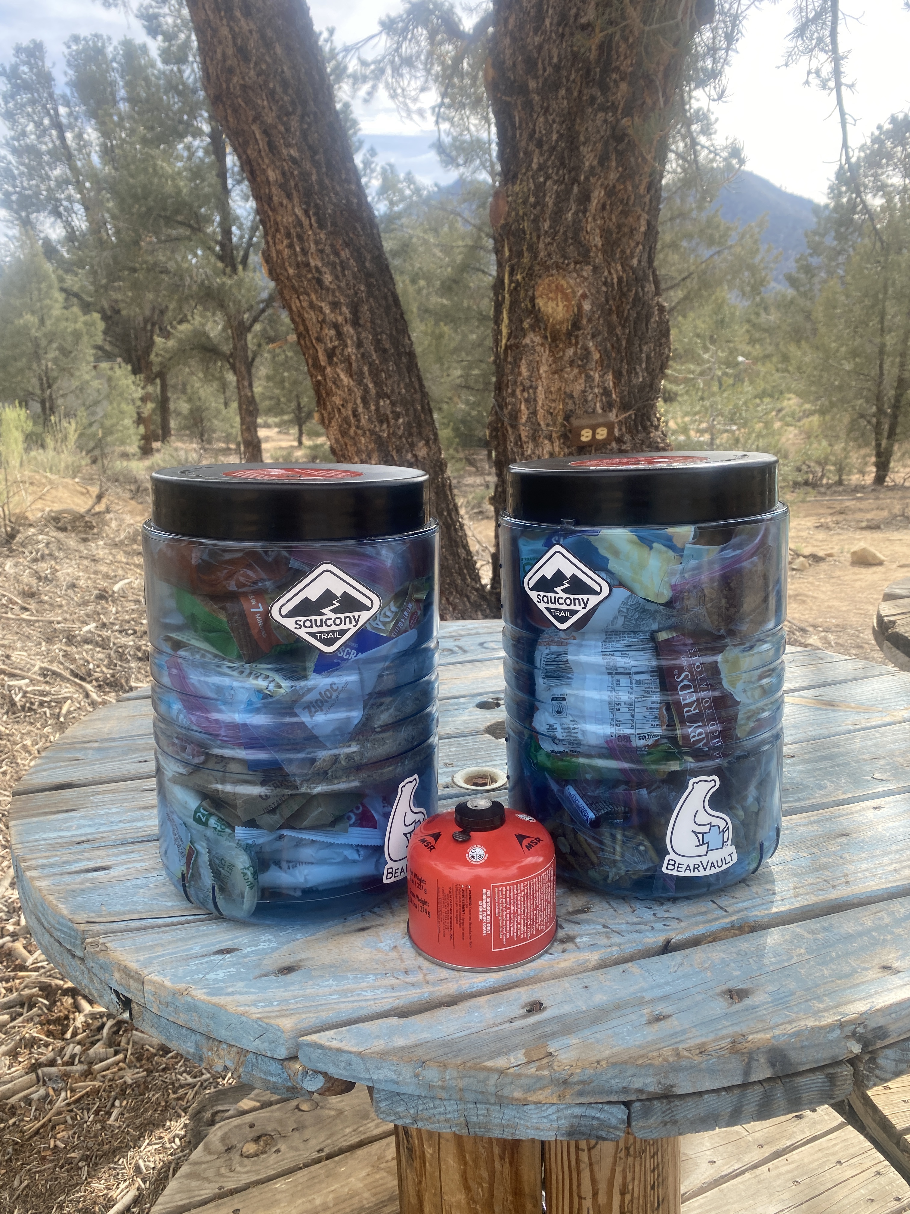 Kennedy Meadows is voor velen ook de plek om gear te wisselen. Wij hebben er voor gekozen om de meeste dingen zoals ijsbijl en microspikes al mee te dragen omdat er ook bergen met sneeuw in de woestijn zijn. Het enige dat wij moeten oppikken is een bear cannister, vanaf hier is het namelijk verplicht om je voedsel hierin op te slaan en is het ophangen van voedsel niet meer genoeg. Het extra gewicht zou moeten wegvallen tegen minder water dragen want dat is er in overvloed in de bergen.
