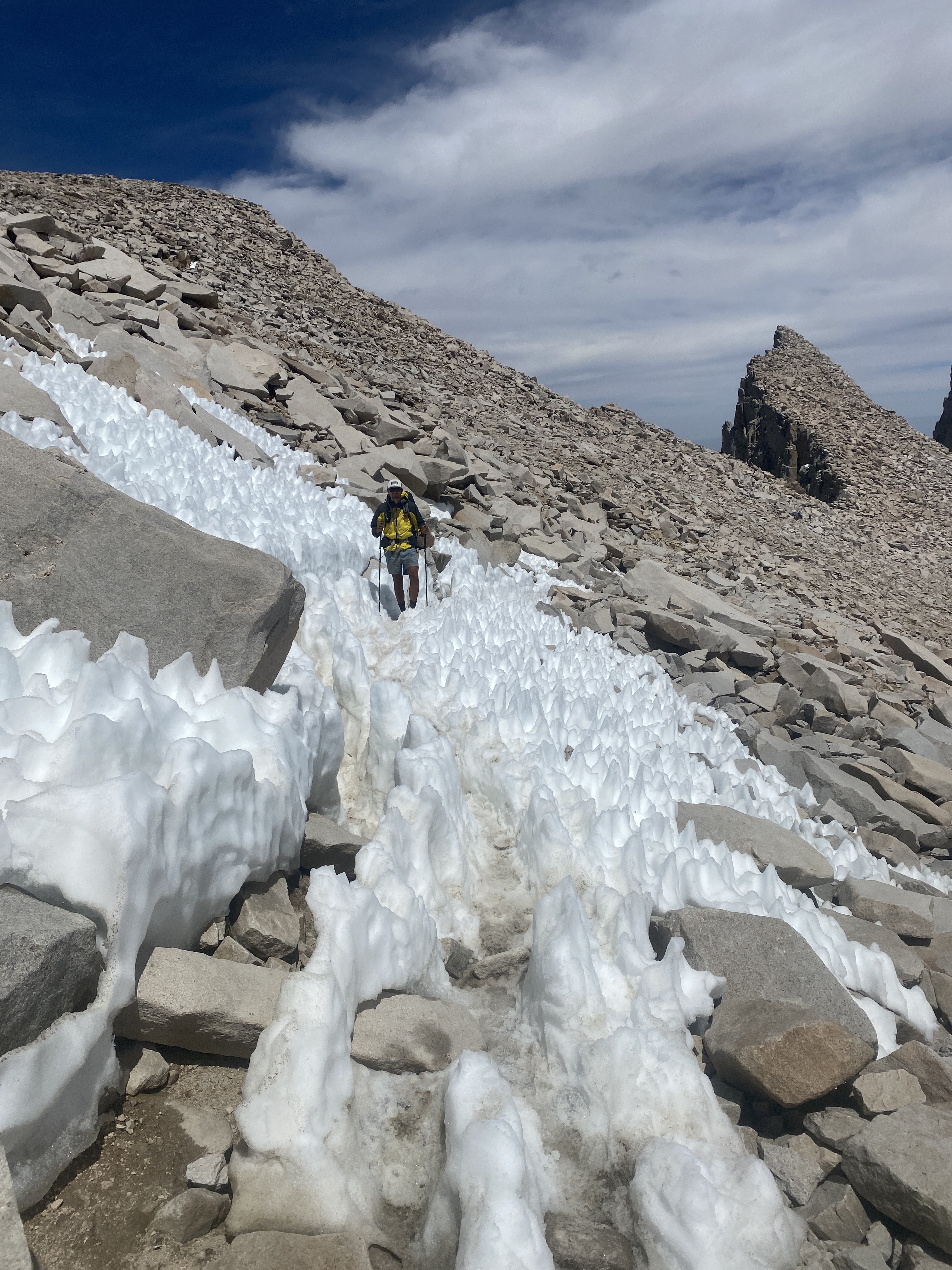 De hoge sneeuwtoppen komen steeds dichterbij wanneer we Crabtree Meadows bereiken. De eerste echte reus die je kunt beklimmen is meteen de hoogste van de 48 aaneengesloten staten van de VS, Mt. Whitney, 4.421 meter hoog. De top van deze berg ligt niet op de PCT, maar met een stevige dagtrip kun je deze top bereiken wat de meeste hikers ook doen. De klim is werkelijk fantastisch met prachtig uitzichten. Wanneer we boven staan realiseren we ons hoe fit we zijn geworden in de laatste maanden en zijn we toch best wel trots op onszelf. Na een uurtje genieten op de top snel weer naar beneden.