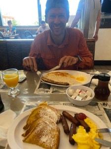 Naast het hiken, klimmen en dalen zijn er ook een paar momenten om even te relaxen, lekker te eten en te socialisen. We stoppen maar liefst 3 nachten in Bishop en 2 nachten in Vermillion Valley Resort. Bishop bereiken we door een omweg over Kearsage Pass en als we er zijn moeten we zo veel doen (kapper voor Erwin, nieuwe broek voor Suus, tentritsen schoonmaken en insmeren, boodschappen etc) en is het onverwachts gezellig met Bugs en The Dude in The Brewery dat we onze oorspronkelijke 1 nacht verlengen met 2 extra nachten. En we hebben er van genoten! Wat een leuk stadje om even een paar dagen bij te komen! Het betekent wel dat we of later in VVR aan zullen komen of sneller/meer moeten lopen. We proberen het laatste maar het wordt het eerste. Erwin mist voor het eerst live de Formule 1.