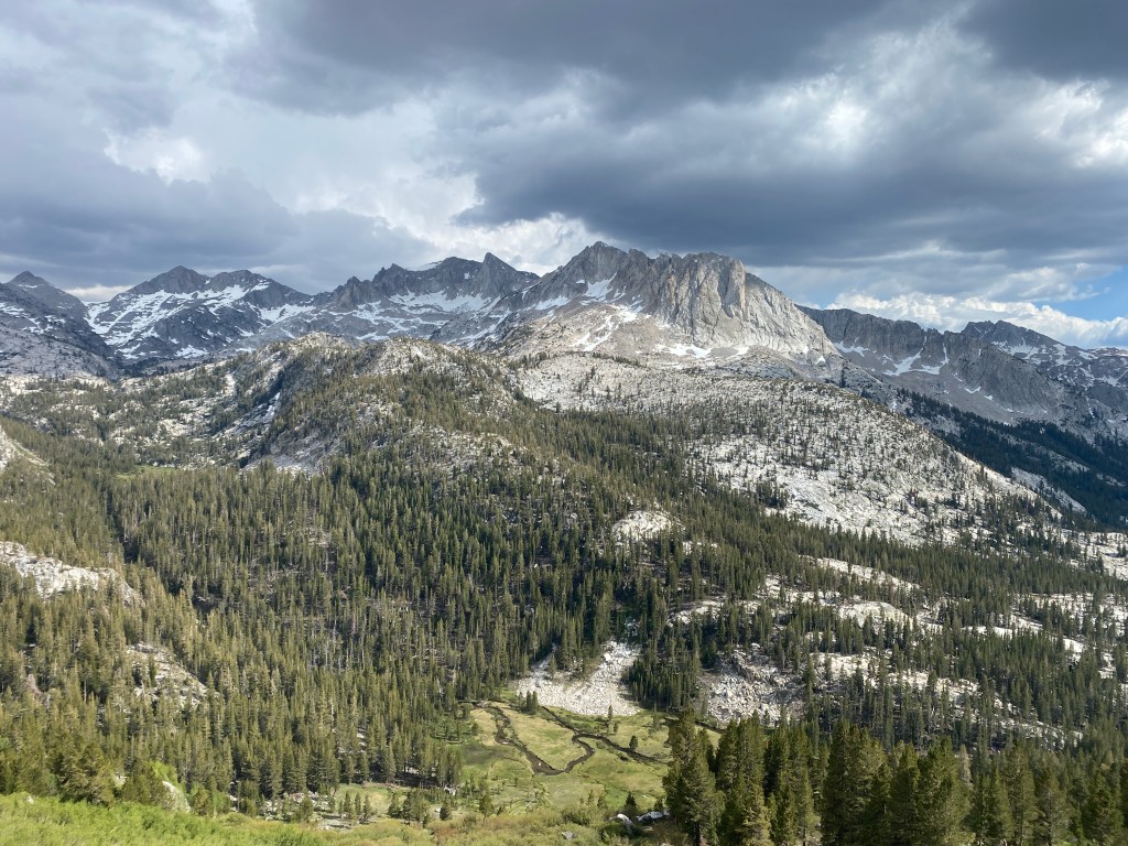 In VVR (een restaurant met klein winkeltje en wat hutjes waar we mogen kamperen) blijven we ook een nachtje extra omdat het weer is omgeslagen. Donkere wolken en koude wind zijn al dagen onze metgezellen, sommige hebben zelfs sneeuw gehad, maar wij zijn steeds laag als de wolken zich laten zien en hebben steeds geluk. Tot de dag dat we weg willen, het regent en onweert dus besluiten we een nachtje extra te pakken. Wat goed uitpakt, ‘s avonds wordt het weer extra gezellig! Helaas onweert het de volgende ochtend weer, maar nu geen excuses meer en terug naar de trail! Op naar een hamburger in Red Meadows en een mini resuply om uiteindelijk Touloumne Meadows store in Yosemite te halen.