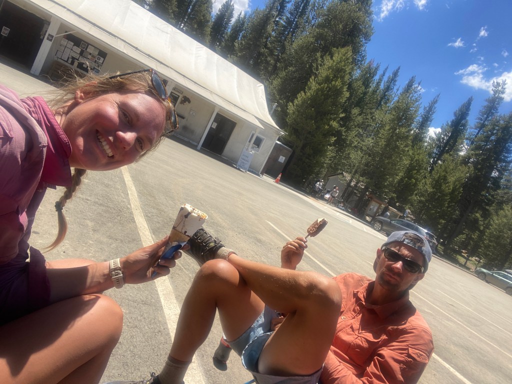 Dit verhaal begint op een rare plaats aan de zuidkant van Yosemite National Park, de Tuolumne store. Dit is een soort witte festivaltent waar vooral dagjesmensen souvenirs en snacks kunnen kopen, maar het is ook een uitvalsbasis voor hongerige hikers zoals wij. Sinds deze ochtend zitten we zonder eten dus we rennen de winkel in als we om 10 uur in de ochtend aankomen.