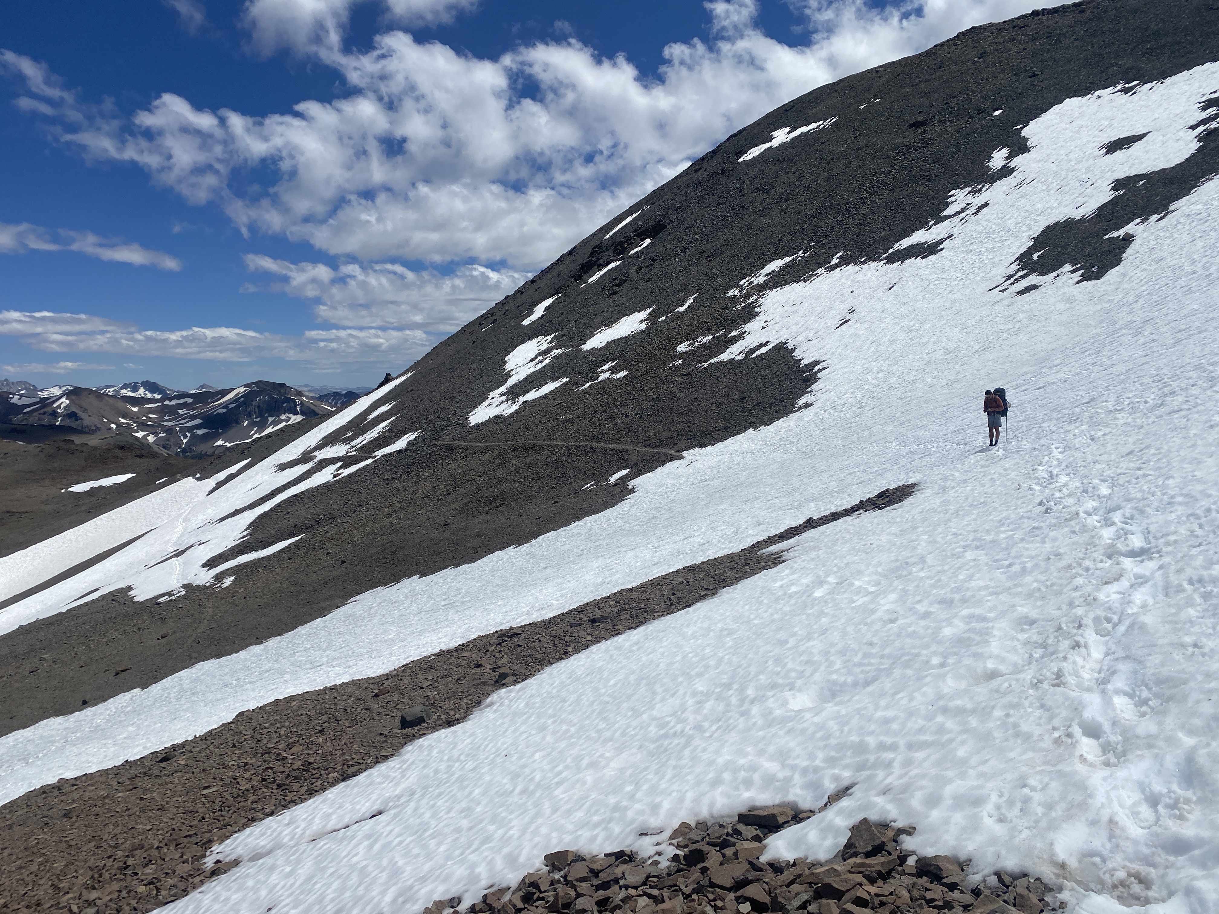 Nadat we Yosemite uit zijn moeten we nog één keer tot een grote hoogte klimmen naar de Sonora Pass en hebben we een prachtig uitzicht over de besneeuwde toppen van de Sierra Nevada bergen aan de ene kant een aan de andere kant de groenere bergen en heuvels in Noord Californië. Voordat de volgende sectie begint moeten we hier een lift scoren naar Kennedy Meadows North.