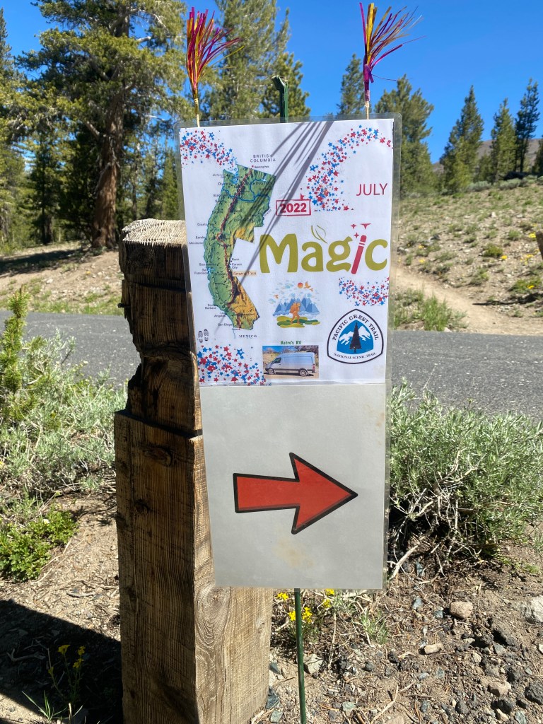 We mikken op 4 dagen lopen naar Echo Lake vanwaar we naar South Lake Tahoe gaan. We hebben echter power in onze benen en de trail is veel beter te doen dan de eindeloze rotsen in Yosemite dat we in 3 dagen aankomen. Misschien komt het ook door de heerlijke trailmagic die we krijgen vlak nadat we Kennedy Meadows verlaten. Chili en een marshmellow salade en omdat het the 4th of juli is, speciale USA bandana’s! Het landschap is echt zichtbaar en dus ook voelbaar aan het veranderen. Meer groene open vlaktes, bloemen en veel bos. Maar nog steeds mooi! En lekker om op een relaxte manier wat meer kilometers te kunnen maken :)!