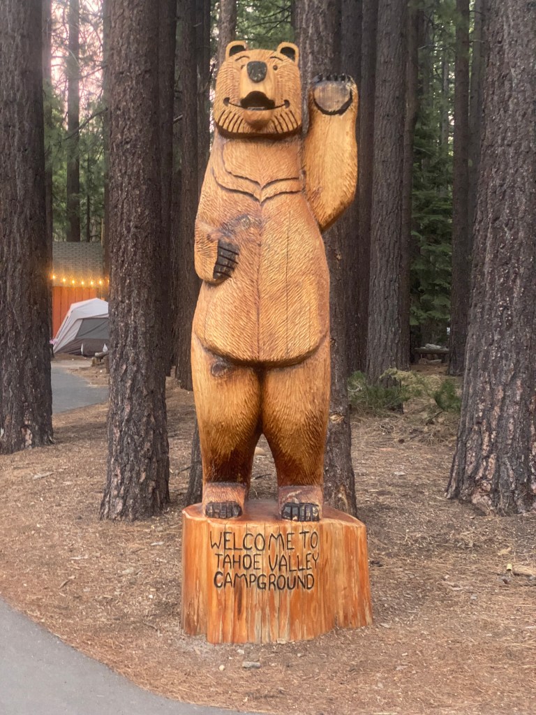 We blijven alsnog 3 nachten in het stadje. Eerste dag gebruiken we voor alle klusjes die we moeten doen. Rits van de tent laten maken (want die gaat niet meer dicht), boodschappen doen, douchen, hetzelfde verhaal als in elk stadje. De tweede dag voelt als een vakantie dag. We lopen langs het meer tussen hordes toeristen, drinken ijskoffies en bezoeken het deel van de stad dat ligt in Nevada. Dat betekent casino’s! Super grappig om eventjes het Hard Rock hotel in te duiken en kijken of we van 10 dollar misschien de rest van onze trip kunnen bekostigen ;). Helaas moeten we het blijven doen met wat we al gespaard hebben.