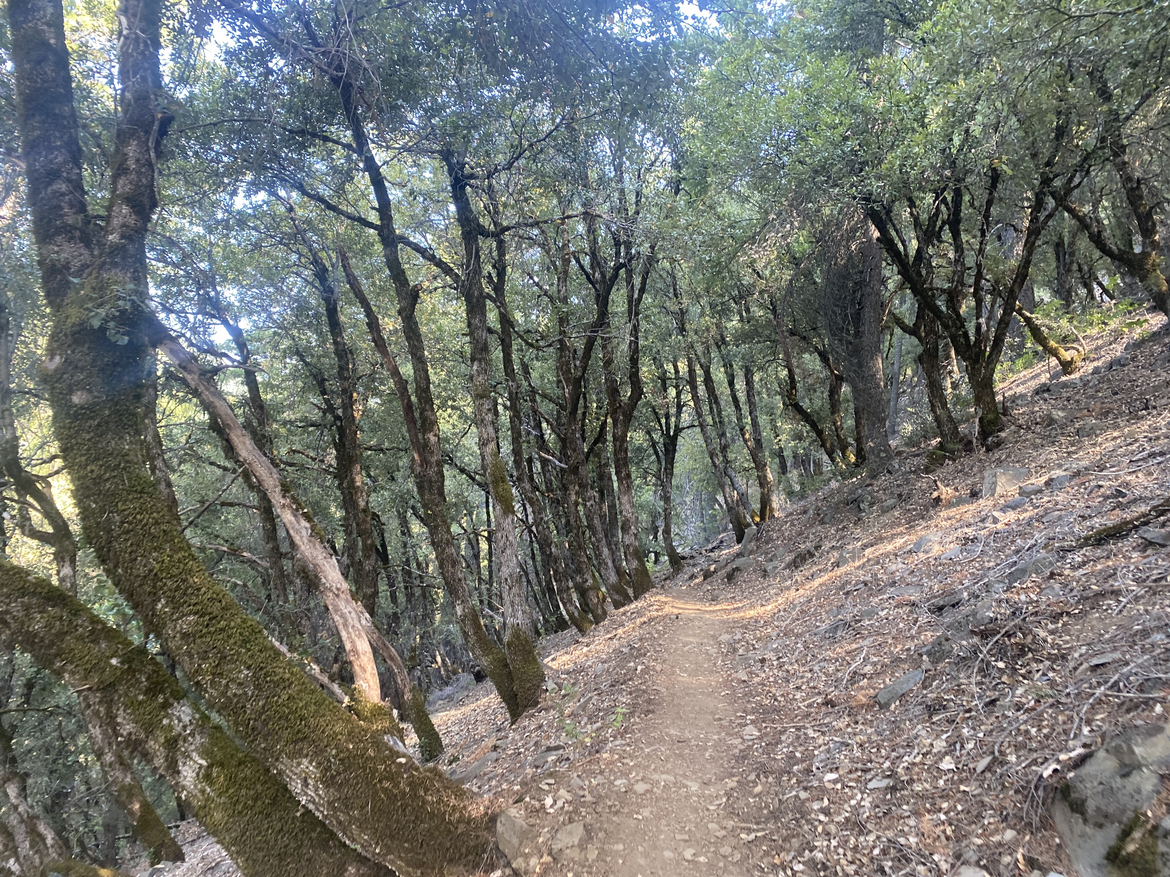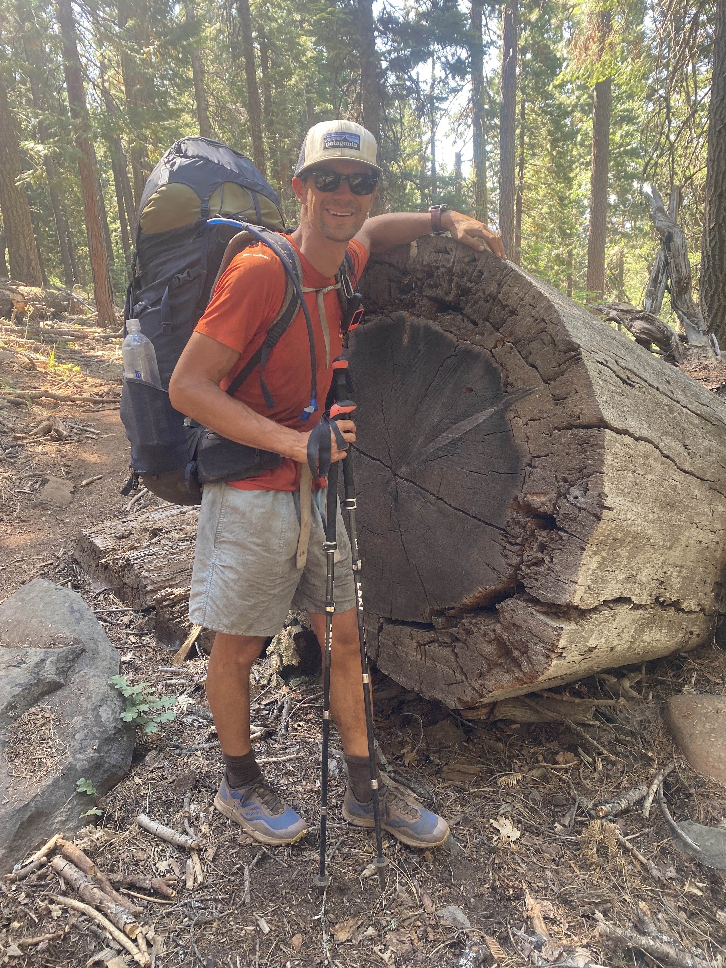 De trail is niet overal even goed onderhouden en het is vaak klimmen en klauteren over omgevallen bomen of door het struikgewas heen waden. Zoals altijd blijft de PCT toch een beetje een gevecht tegen de tijd dus ook voor dit stuk hebben we onszelf weer flinke doelen opgelegd. Om de 40km plus afstanden te halen lopen we daarom bijna elke dag wel een stukje in het donker door het bos.