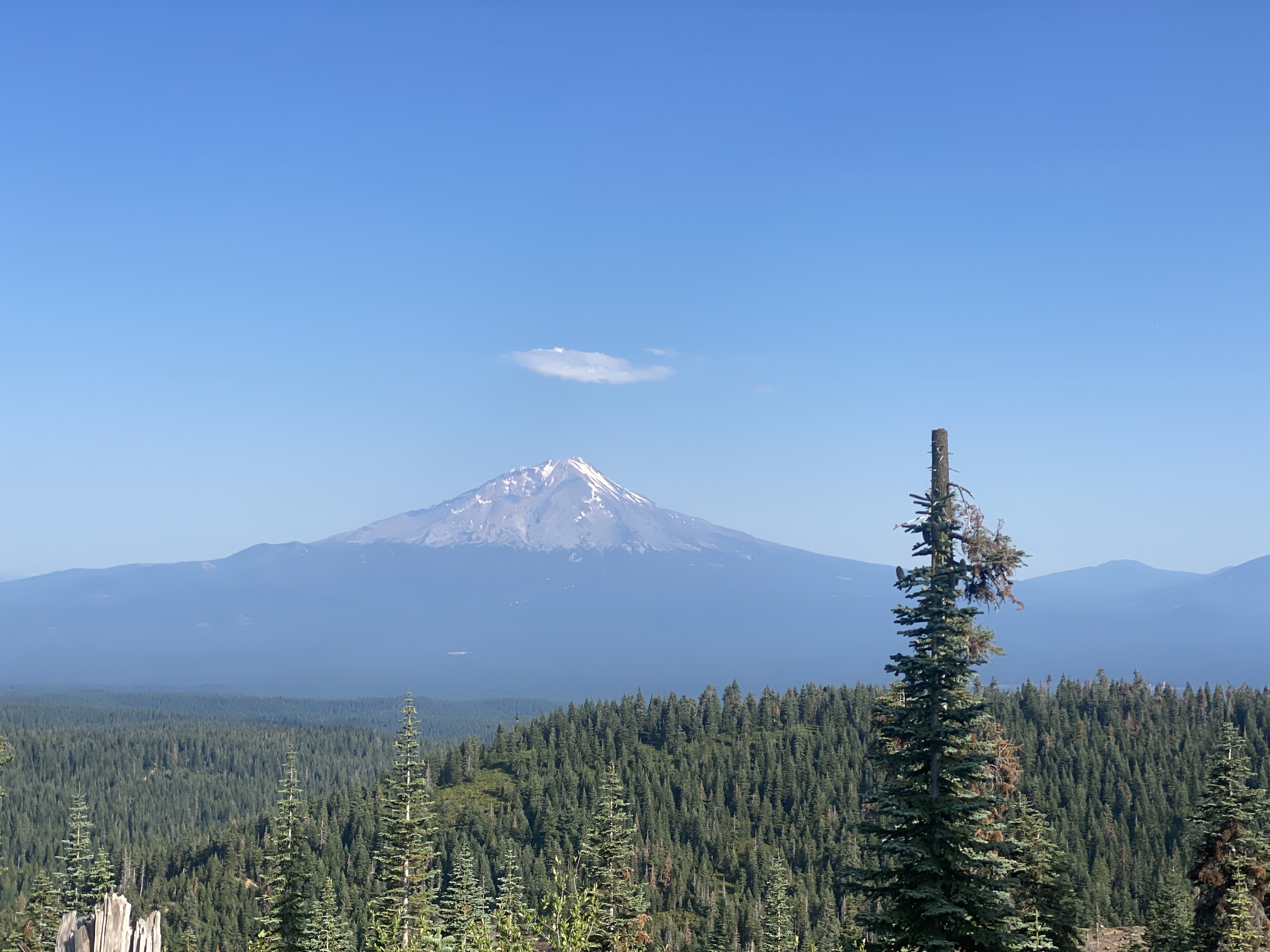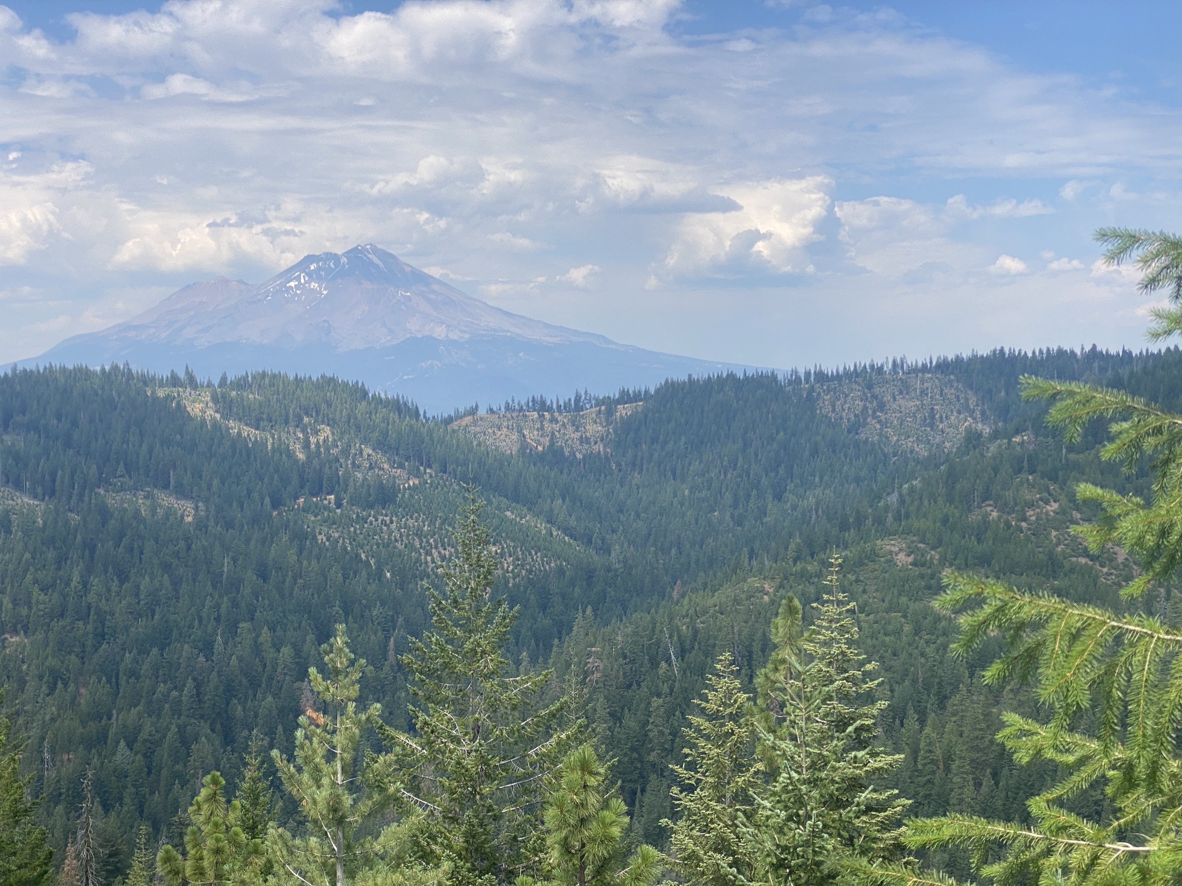 De komende 4 dagen doorkruisen we het Shasta-Trinity National Forest. We gaan op en neer door dit bos en bij de uitzichtpunten zien we steeds weer de prachtige mt. Shasta die met zijn ruim 4.200 meter overal bovenuit torent.