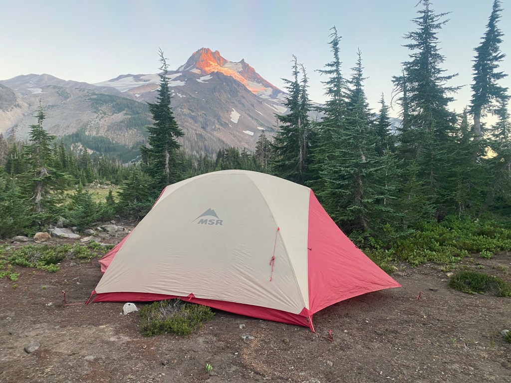 Uiteindelijk is het één van de mooiste gebieden waar we doorheen hebben gelopen tot nu toe. We vinden ook een fantastische kampeerplek met Mt. Jefferson als uitzicht. Wat een dag!