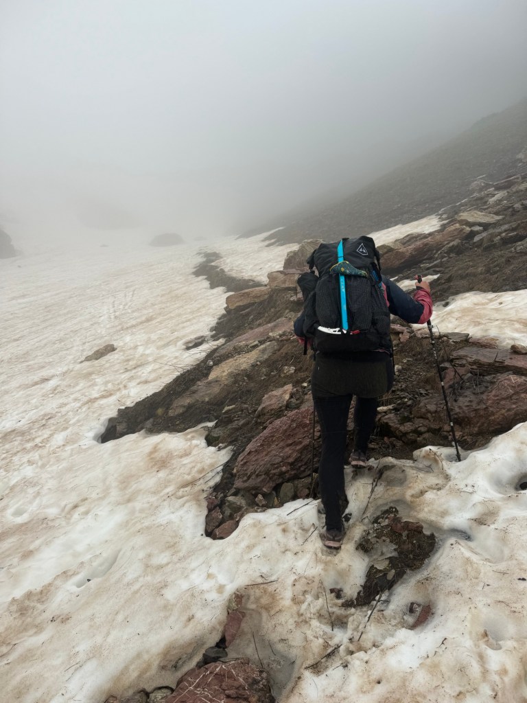 Waar we vorige week nog uit onze panty zweette in de zon, staat deze week in het teken van regen, mist en sneeuw. Onze regenkleding draait overuren en even lekker ons stoeltje neerzetten om in het zonnetje te relaxen zit er even niet in. Het meest jammere van het slechte weer is dat we, waarschijnlijk, heel veel prachtige uitzichten hebben gemist. Maar we gaan er vanuit dat er nog velen gaan komen! Naar mate de week vordert worden we ook steeds meer beloond met af en toe blauwe lucht en de weerberichten worden steeds beter!