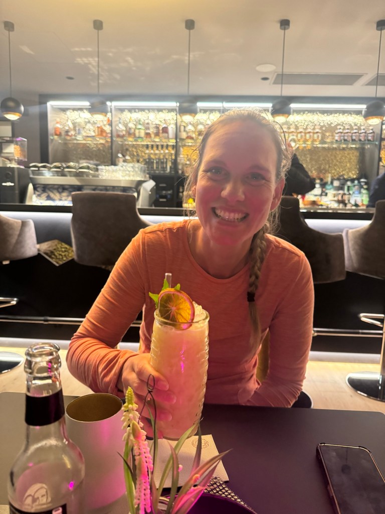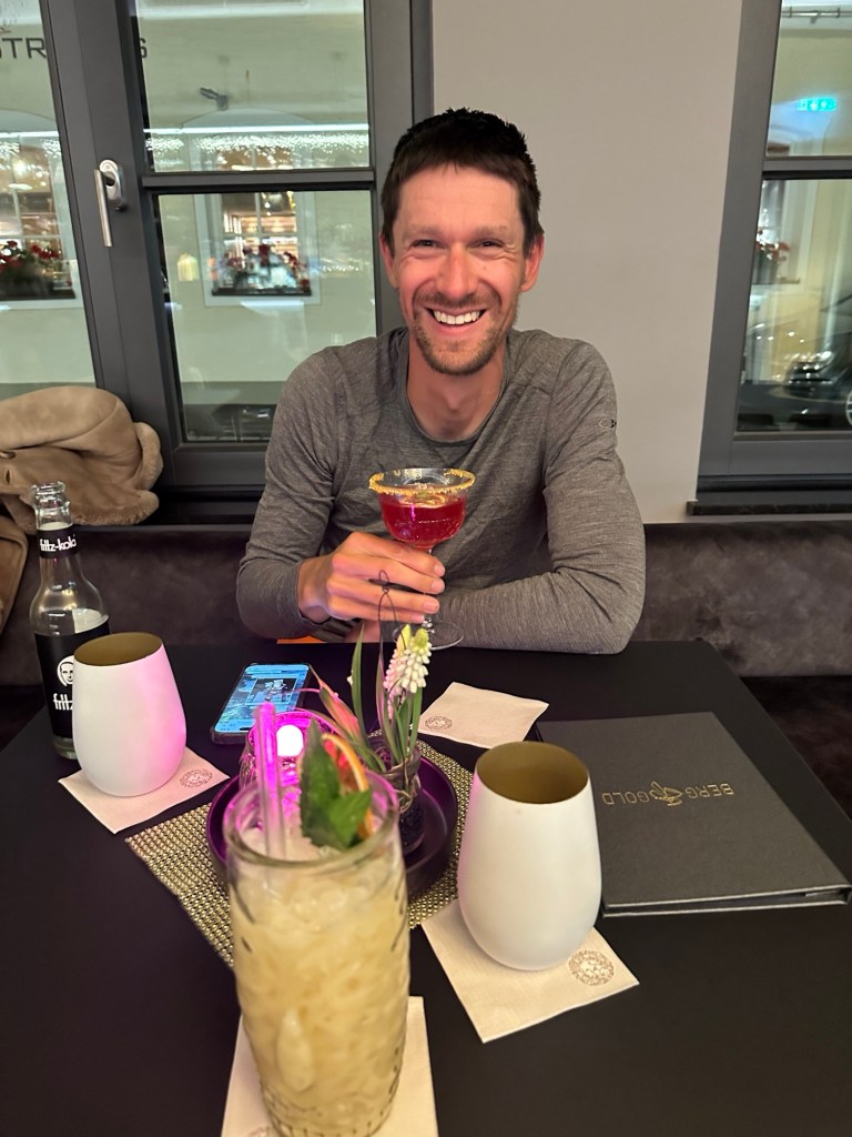 Na die gemoedelijke dag staat ons, onverwachts, een wat minder relaxte dag te wachten. We hadden wel al gepland om een flinke dag te maken naar Obersdorf. Maar door een sneeuwveld (die heel onverwacht nog ligt op 2100meter) wordt het een hele lange dag. Tja sneeuw blijft (ongewild) een groot en belangrijk thema voor ons. We besluiten er omheen te lopen en na 48 km en 2200 hoogtemeters komen we aan om 10 uur ‘s avonds. Opzoek naar nog wat te drinken is de cocktailbar nog open. Een lekkere cocktail dan maar! 😜