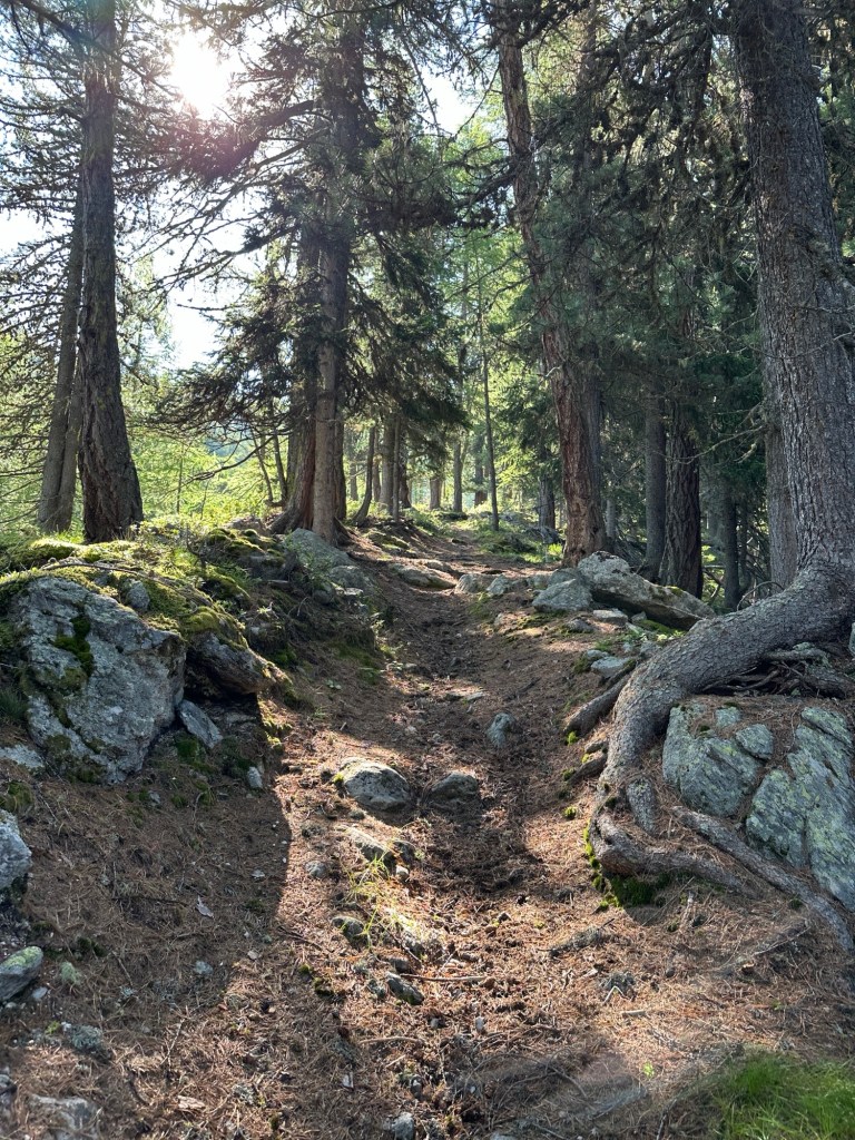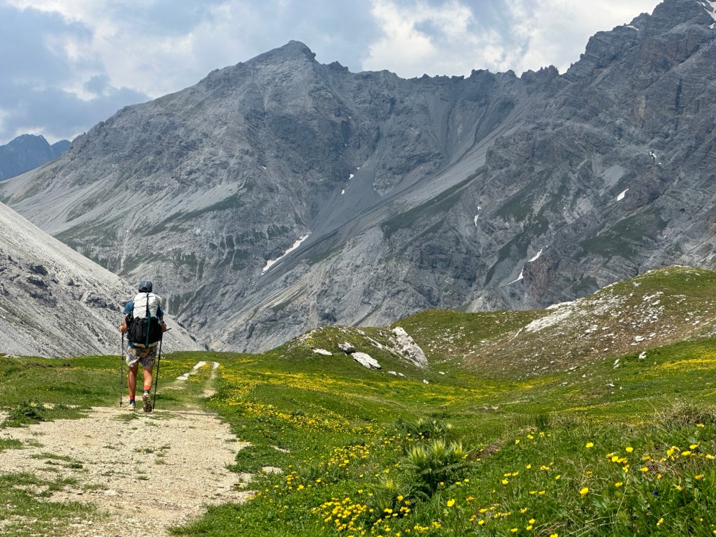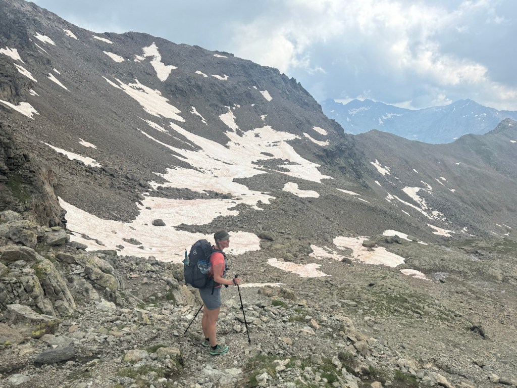 We starten vanuit Taufers im Münstertal met een klim van 1200 hoogtemeters in 4 km. Hij blijkt gelukkig achteraf best ok te doen. Verder op in de week staat ons de klim vanuit over de Vermulera pas te wachten. Eentje waarvan we van tevoren een escape route hebben bedacht voor het geval we er niet overheen komen. Er kan namelijk nog sneeuw liggen en volgens reacties op de route is het laatste deel heel erg steil en moeilijk. Niks aan gelogen blijkt. De laatste 200 hoogtemeters zijn steil door de sneeuw en losse rotsen omhoog. Je kan het pad eigenlijk geen pad noemen en lopend omhoog ben je bijna bang achterover te vallen zo steil gaat het. Gelukkig komen we ook hier weer boven en is de weg naar beneden minder moeilijk.