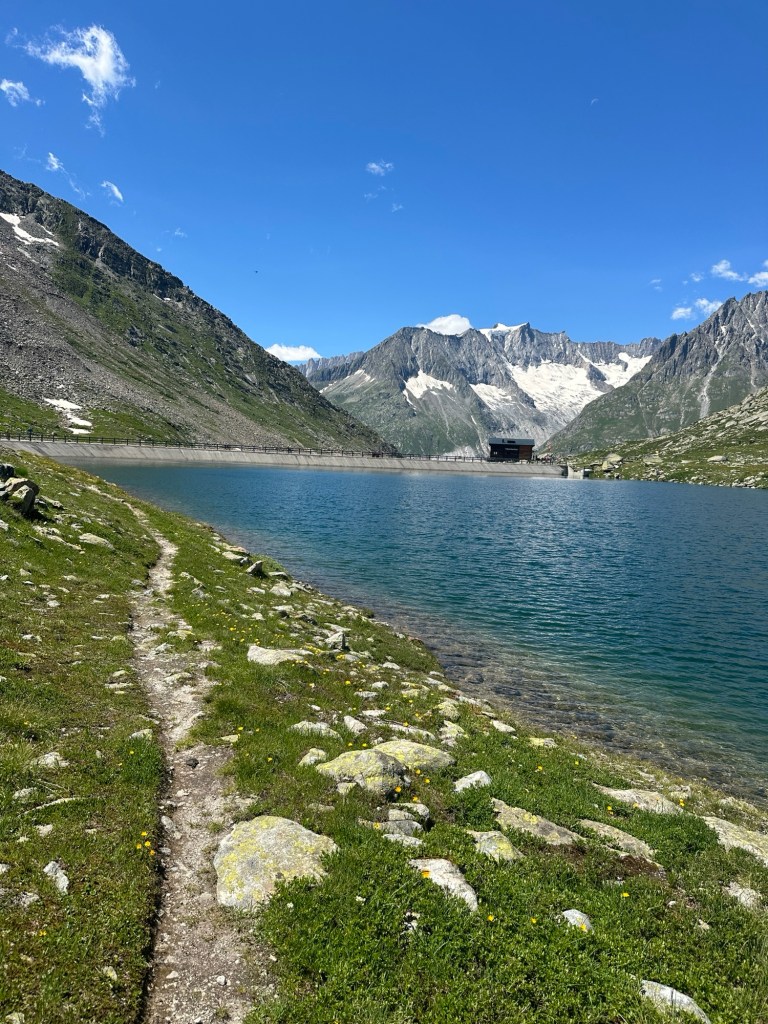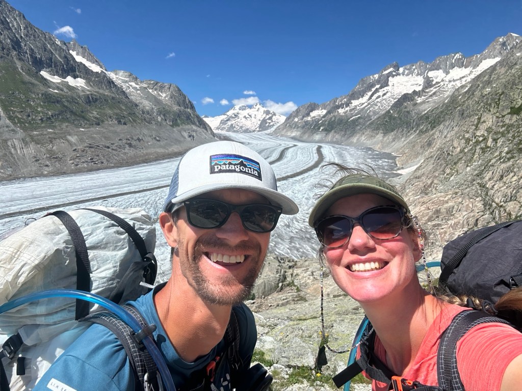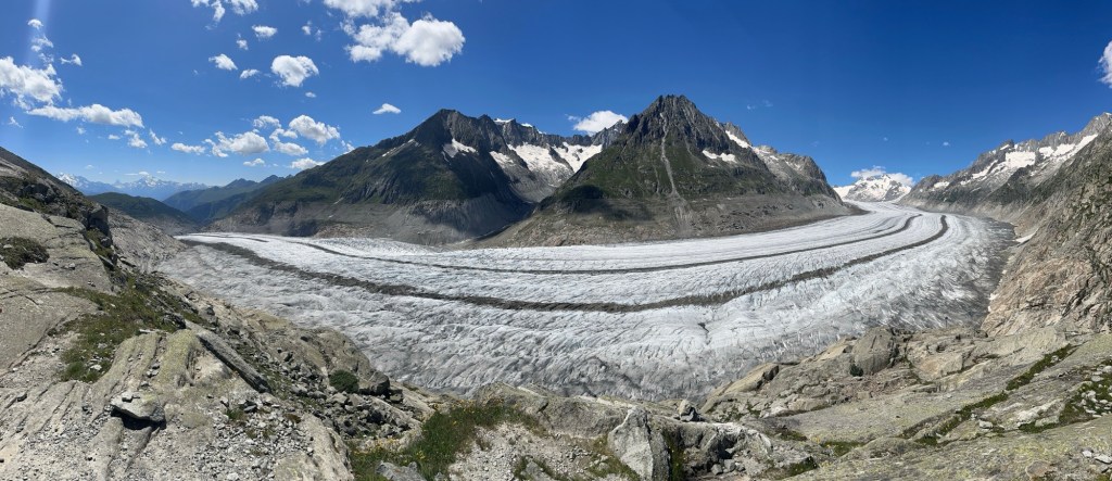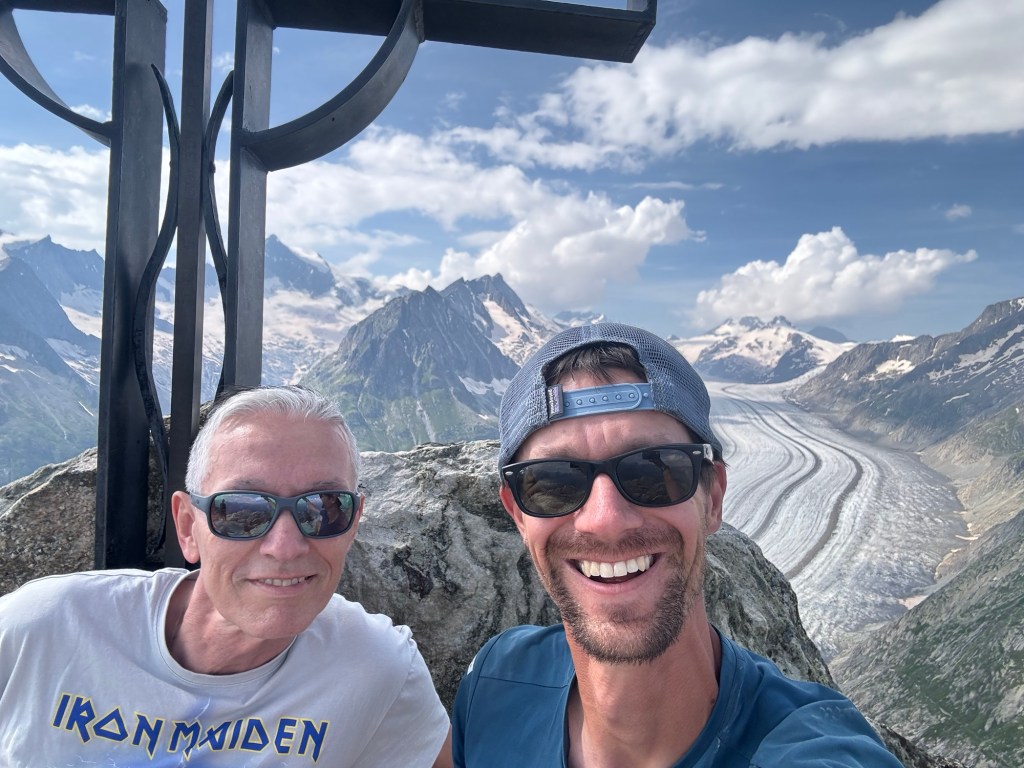 We hebben Fiesch gehaald, dat betekend de volgende dag naar het mooie hotel in Belalp! Deze stond al geboekt en wilden we heel graag halen. Het liefst voor het eten. Maar zo simpel is dat nog niet. Met 33 km en 2600 hoogtemeters wordt het nog flink doorlopen om een beetje bijtijds bij het hotel te zijn. Ook omdat het vandaag een prachtige dag is en we ook veel om ons heen willen kijken en willen genieten van de omgeving. Zo lopen we langs de Aletschgletsjer, de grootse gletsjer van de Alpen. Echt heel indrukwekkend! Hier genieten we volop! En ook van alle leuke skidorpjes die we tegenkomen. Wat een leuke omgeving :). Aan het einde van de dag zien we de tijd dan toch aan ons voorbij tikken. We besluiten te kijken wat onze benen kunnen en met een sprintje omhoog zijn we nog net op tijd om eten te bestellen in ons (prachtig gelegen) hotel!