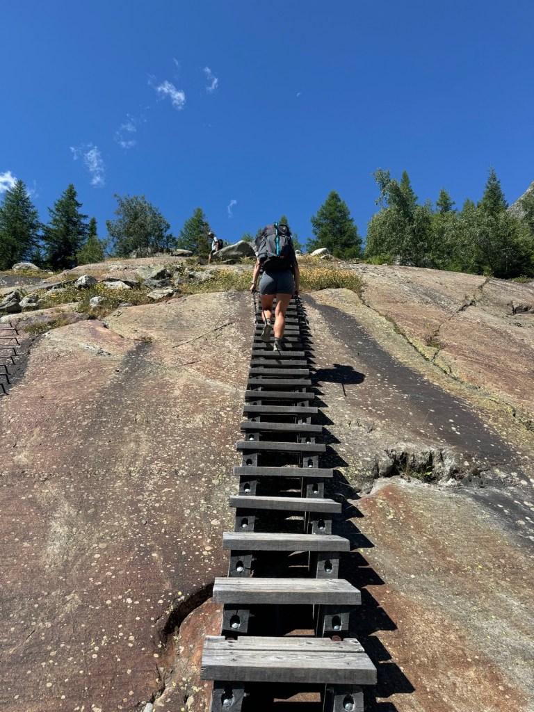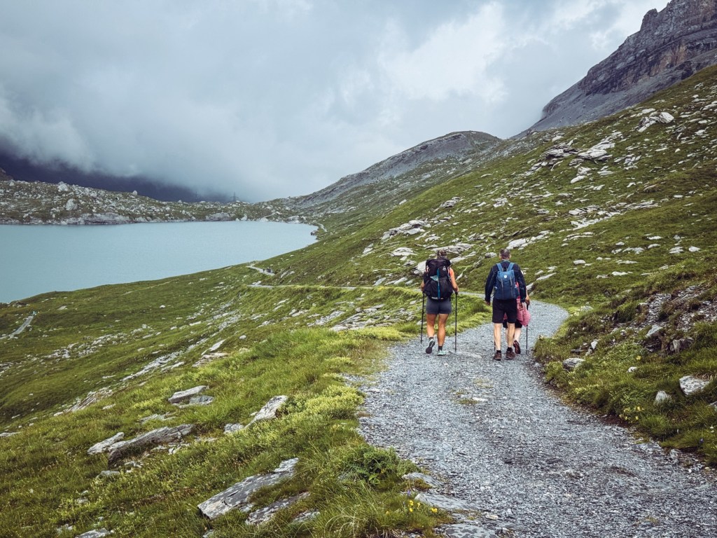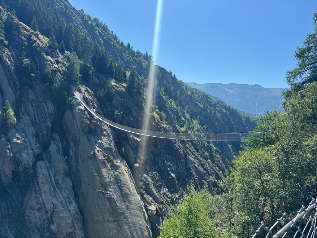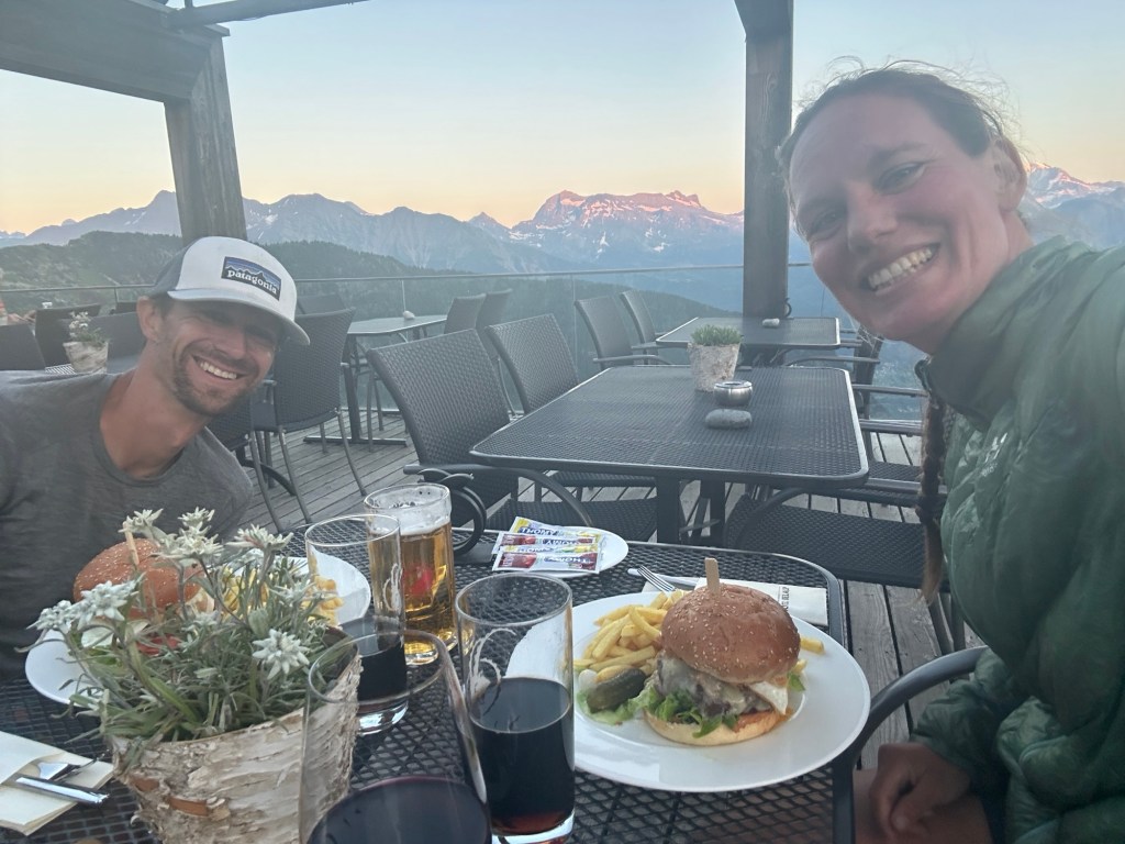 Dan is het tijd om, na een relaxte ochtend, door te lopen naar Mund. Een kort hikedagje want na 13 km stoppen we al met hiken en stappen we in de bus. Vandaag komen namelijk, super gezellig, de ouders van Erwin onze kant op. Wij lopen deze dagen nog wel elke dag een stukje, maar 2 dagen kan onze rugzak wel in de auto mee! Wat een luxe en daardoor kunnen we ook wat sneller lopen (en zelfs een beetje trailrunnen). Ook doen we gezellig echte vakantie dingetjes, zoals toeristische attracties bezoeken (met de kabelbaan woehoe) en lekker terrasjes pakken. We vermaken ons uitstekend en maken het af door met zijn vieren naar een berghotel te lopen en daar te overnachten. Helaas worden we tijdens de hike ernaar toe verrast door een enorme hagel een regenbui en kunnen we onze kleren uitwringen. Maar ook dat maakt weer een mooi verhaal ;).