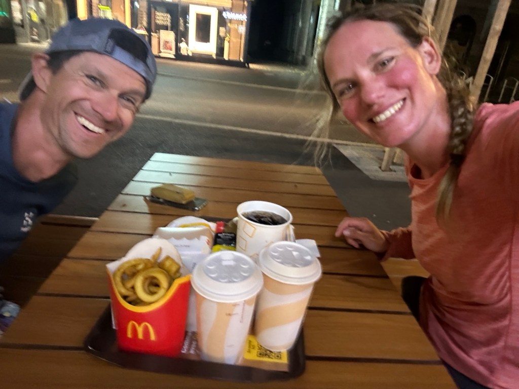 De volgende dag zijn we wederom net op tijd voor het eten. (Story of our trip, wat je doet afvragen, willen we te ver lopen, starten we te laat of lopen we te langzaam? 🤔). We slapen in een leuk en schattig restaurantje met hutachtige slaap opties. We merken aan het eten dat we krijgen, dat we lang niet meer genoeg hebben aan ‘normale’ porties. Onze ‘hikerhunger’ (het gevoel oneindig te kunnen eten en continu trek te hebben) is inmiddels goed op gang gekomen. Niet zo gek, we merken allebei dat we flink aan het afvallen zijn dus blijkbaar krijgt ons lichaam minder calorieën binnen dan gewenst. Goede reden om geen enkel ijsje, colaatje of patatje te laten staan 😇.