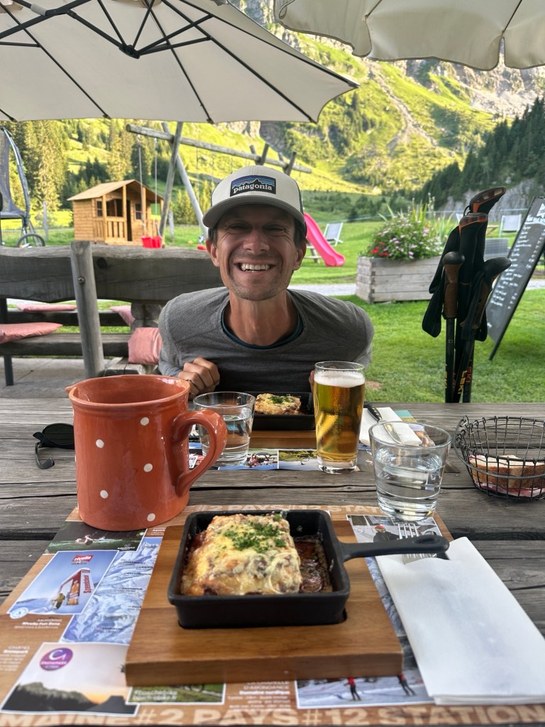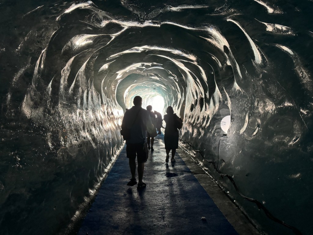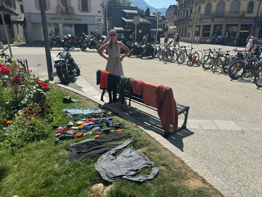 Dan mogen we weer twee dagen vakantie vieren en toerist spelen. We bezoeken Mer du Glace (inclusief ijsgrot, hoe koel 😉!) en gaan met de lift naar col de Brevent. We eten heel veel ijsjes en andere lekkere dingen. We vermaken ons prima zo met zijn vieren 😎. Ook krijgt Suus voor haar verjaardag een mooie nieuwe outfit en kunnen we weer eens de was doen (ook wel eens fijn). Maar ook aan deze vakantie komt weer een eind. Dinsdagochtend is het weer tijd om afscheid te nemen en verder te lopen.