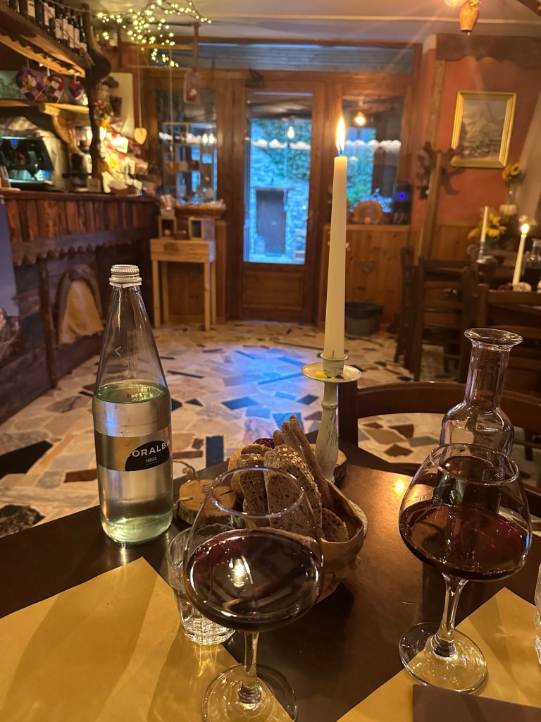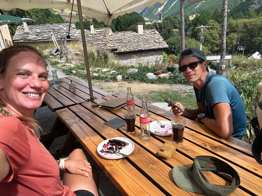 Gelukkig voor onze cash, maar ongelukkig voor onze voedselvoorraad, is dat we om verschillende redenen deze week op plekken niet kunnen eten. Zo zijn we te vroeg voor de lunch, zijn er hutten dicht, zijn we te laat voor het avondeten (daarover later meer), wordt eten alleen geserveerd aan gasten die blijven slapen, of alleen aan mensen die hebben gereserveerd. Het gaat dus snel met onze voedselvoorraad en we hebben niet elke avond een warme maaltijd. Maar maak je geen zorgen, we eten genoeg ;). We eten regelmatig taartjes, lekkere sandwiches en we krijgen 2 keer uitgebreid, lekker en traditioneel Italiaans eten geserveerd (met lekker wijn uit de Piemonte streek uiteraard!)