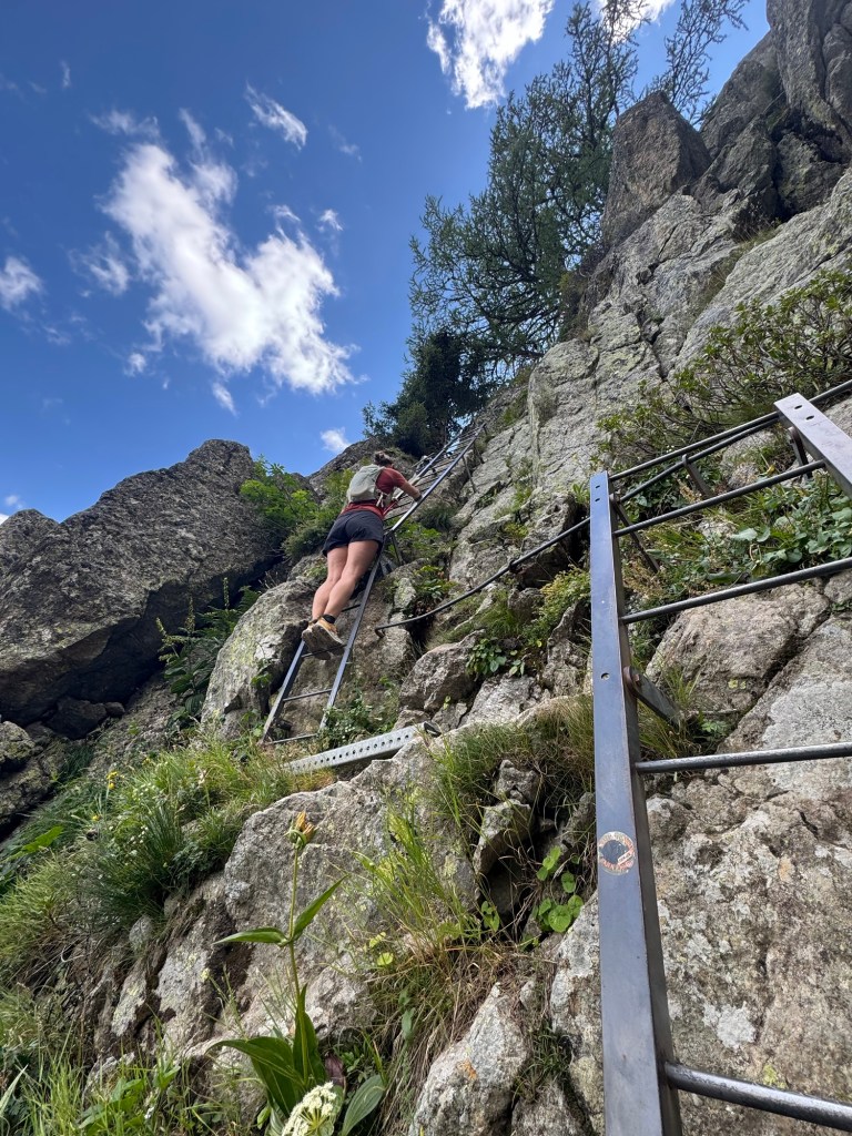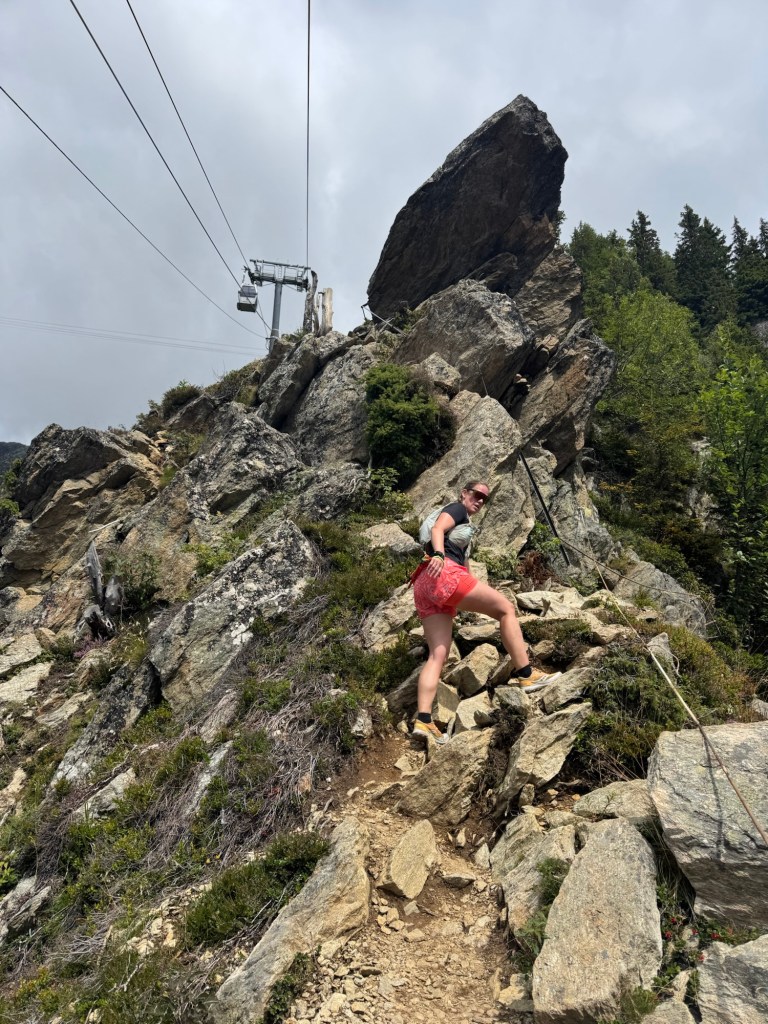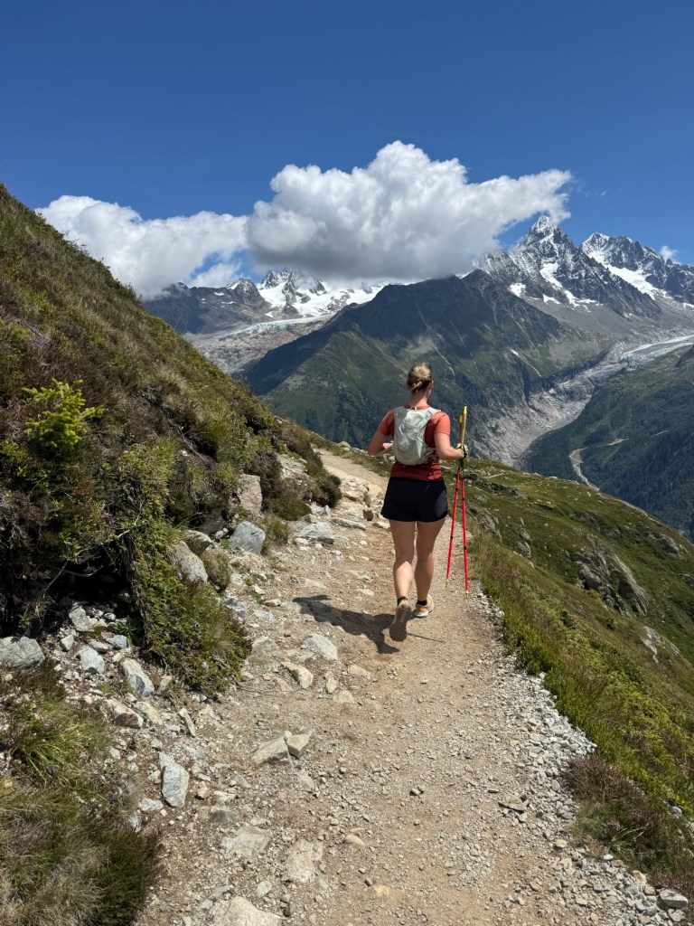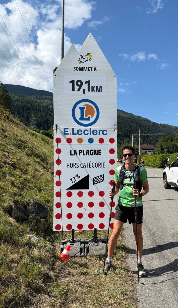 Na onze Italië-trip hebben we één dagje thuis om onze gouden Toyota Aygo tot de nok toe vol te laden voor de komende twee maanden. Daarna rijden we richting Les Houches, waar we voor een maand een appartement hebben gehuurd. Maar eerst maken we een tussenstop in Les Plagnes, waar die dag de Tour de France etappe finisht. De dag begint stralend, en in onze trailrun-outfits rennen en wandelen we naar een prachtig plekje op de berg. Later trekt het weer wat dicht, maar dat kan de pret van de Nederlandse overwinning niet drukken.